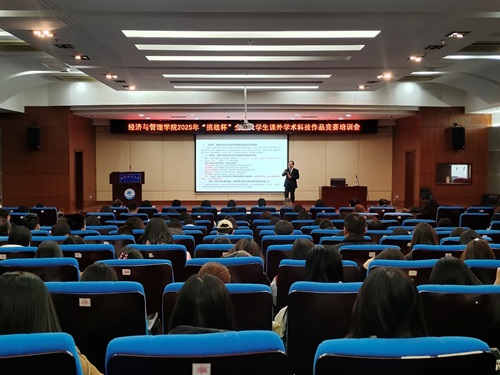 为进一步加强学风建设,激发我院学生参与创新创业工作热情,提升实践能力,助力师生在2025年“挑战杯”beat365在线唯一官网大学生课外学术科技作品竞赛中取得优异成绩,3月19日,经济与管理学院邀请了在“挑战杯”赛事中有着丰富指导经验和突出成绩的武汉理工大学白玉教授,在图书馆五楼报告厅举办了题为《在“挑战杯”全国大学生系列科技学术竞赛舞台上书写人生华章——从选题到夺金:“挑战杯”全国大学生系列科技学术竞赛避坑指南》培训会。本次培训会,不仅是对前一阶段学院项目选拔活动的完善和补充,同时也是对接下来备战校赛的一项重要举措。学院200余名师生参会。