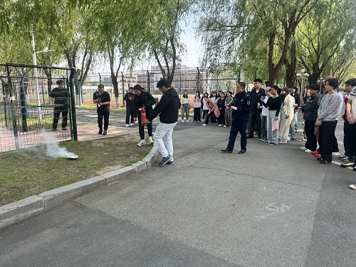 下午,在保卫处现场指挥、国际教育学院和化学工程学院教师引导、宿舍管理员协助的三重保障下,中外学生迅速进入应急状态。参加演练的师生用湿毛巾捂住口鼻,沿预定疏散路线有序撤离至安全区。演练结束后,保卫处副处长宁志高面向师生开展了消防知识强化培训。他现场示范灭火器"提、拔、握、压"四步操作法,同时结合学生公寓常见隐患,详解不同火情的应对策略。随后,部分师生代表亲自操作灭火器完成灭火实操,将理论知识转化为实战能力。