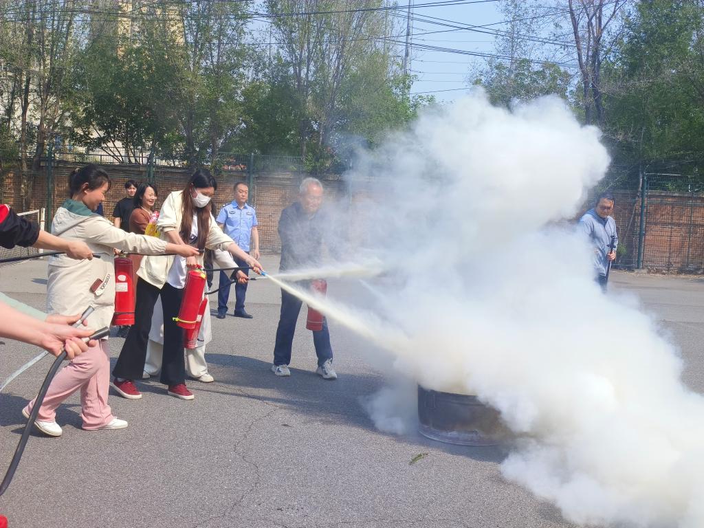 在灭火器实操培训环节,保卫处刘野现场分解演示干粉灭火器“提、拔、握、压”四步操作法。在保卫处老师指导下,参训师生面对模拟火源,均成功完成灭火任务,通过实践操作,大家切实掌握了灭火器的正确使用方法。