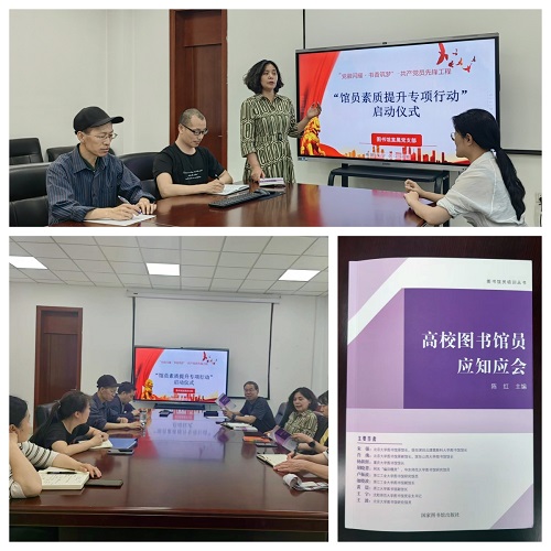 为进一步提升图书馆馆员的专业素养与服务水平,促进图书馆人才队伍建设,推动图书馆各项业务高质量发展,6月4日,图书馆直属党支部举办“馆员素质提升专项行动”启动仪式暨主题党日活动。此次主题党日活动是图书馆直属党支部“党徽闪耀,书香筑梦”共产党员工程活动之一,由直属党支部书记赵霜霜主持,图书馆全体党员参加了启动仪式。
