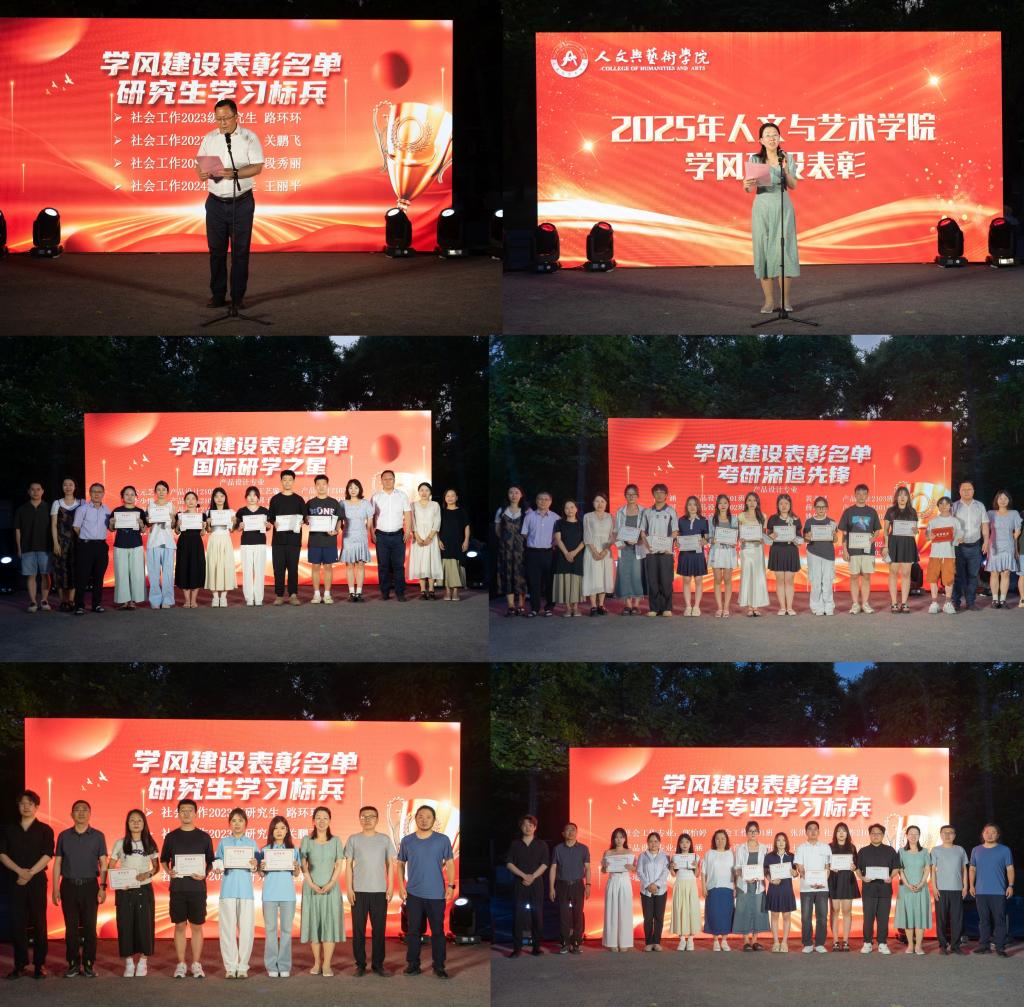 李漫红宣读了《人文与艺术学院2025年学风建设学业深造奖表彰决定》,大会对2名“国内外学业深造博士研究生”、32名“国内学业深造硕士研究生”予以表彰;周克刚宣读了《人文与艺术学院2025年学风建设学习标兵表彰决定》,大会对4名“研究生学习标兵”、16名“本科生学习标兵”、12名“英语学习优秀个人”予以表彰。与会领导和教师代表依次为获奖学子颁发荣誉证书。对于这些被表彰的同学来说,这份荣光,是过往勤勉的肯定,更是未来新征程的起点!