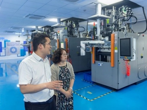 座谈会后,徐州工业职业技术学院材料工程学院院长柳峰带领教师参观了集“产教科培创”功能为一体的高分子智能制造产教融合实践中心和化工新材料智能制造虚拟仿真中心。